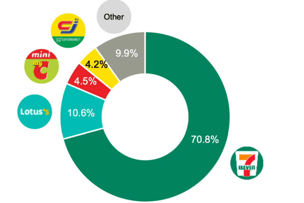 การแข่งขันในตลาด ร้านสะดวกซื้อขนาดเล็ก ซึ่ง 7-Eleven ยังคงเป็นผู้เล่นหลักที่ครองตลาด ด้วยกลยุทธ์การขยายสาขาและการพัฒนาสินค้า ทั้งอาหารพร้อมทาน และเครื่องดื่มอย่างต่อเนื่อง แต่รายอื่นๆ ก็มีการปรับกลยุทธ์ และหันมาช่วงชิงโอกาส จากการส่งร้านสะดวกซื้อขนาดพื้นที่ใหญ่ที่สามารถจัดวางสินค้าได้หลากหลายกว่า มีที่จอดรถ และขยายสาขา เข้าใกล้ชุมชน และหมู่บ้านได้เช่นเดียวกับ ร้านขนาดเล็กที่ 7-Eleven ครองอยู่