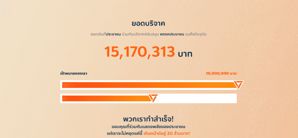 เปิดยอดเงินบริจาค “พรรคประชาชน” ทะลุเกิน 15 ล้านบาทแล้ว
