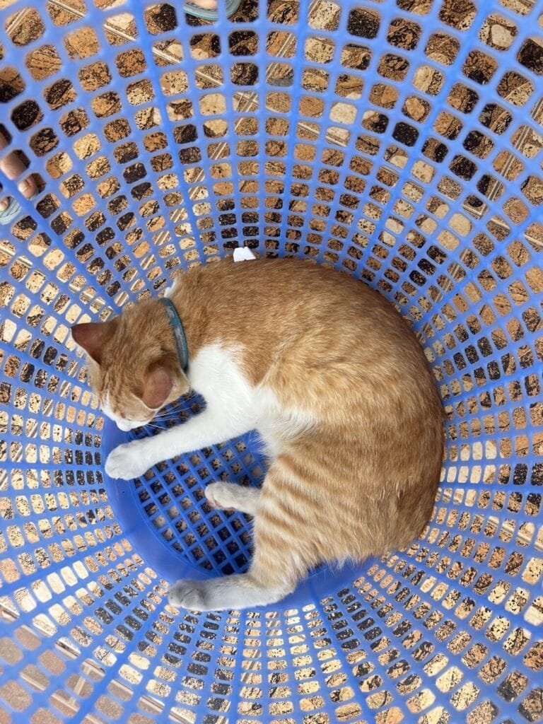 โดยสังเกตว่าเหล็กแหลมของรั้วบ้านนั้นทิ่มไปที่ลำตัวของแมวตัวดังกล่าวและคาดว่าน่าจะติดอยู่นานแล้วเพราะเริ่มมีมดไต่ตัวแมวแล้ว โดยแมวตัวดังกล่าวเป็นของเพื่อนข้างบ้านซึ่งได้โทรแจ้งแล้ว และอยู่ระหว่างเดินทางกลับมา